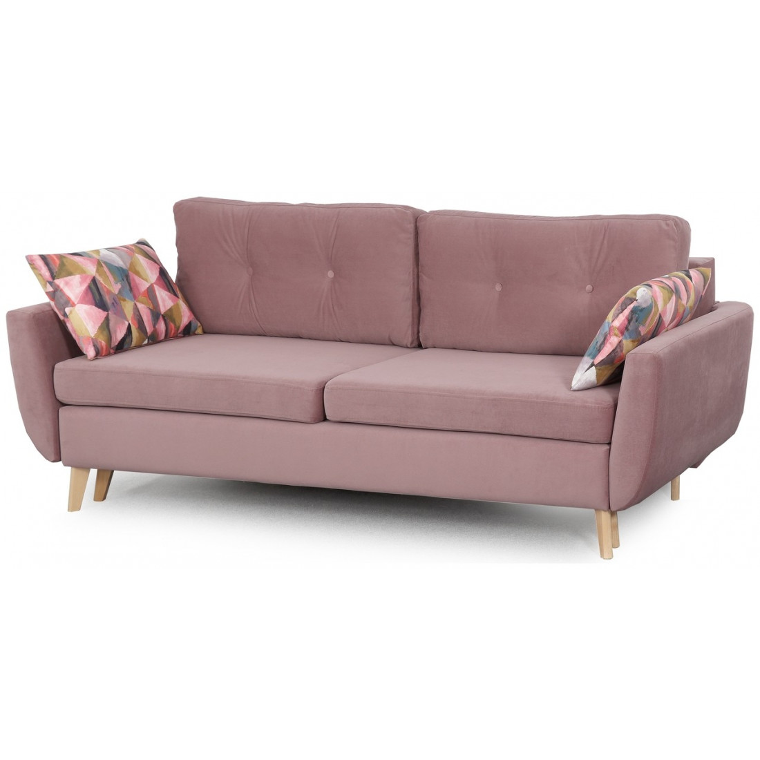 Благодаря тому, что основание модели приподнято над полом, диван не выглядит «тяжелым». Напротив, конструкция добавляет «воздуха» в интерьер. Опоры дивана изготовлены из натурального дерева (береза).