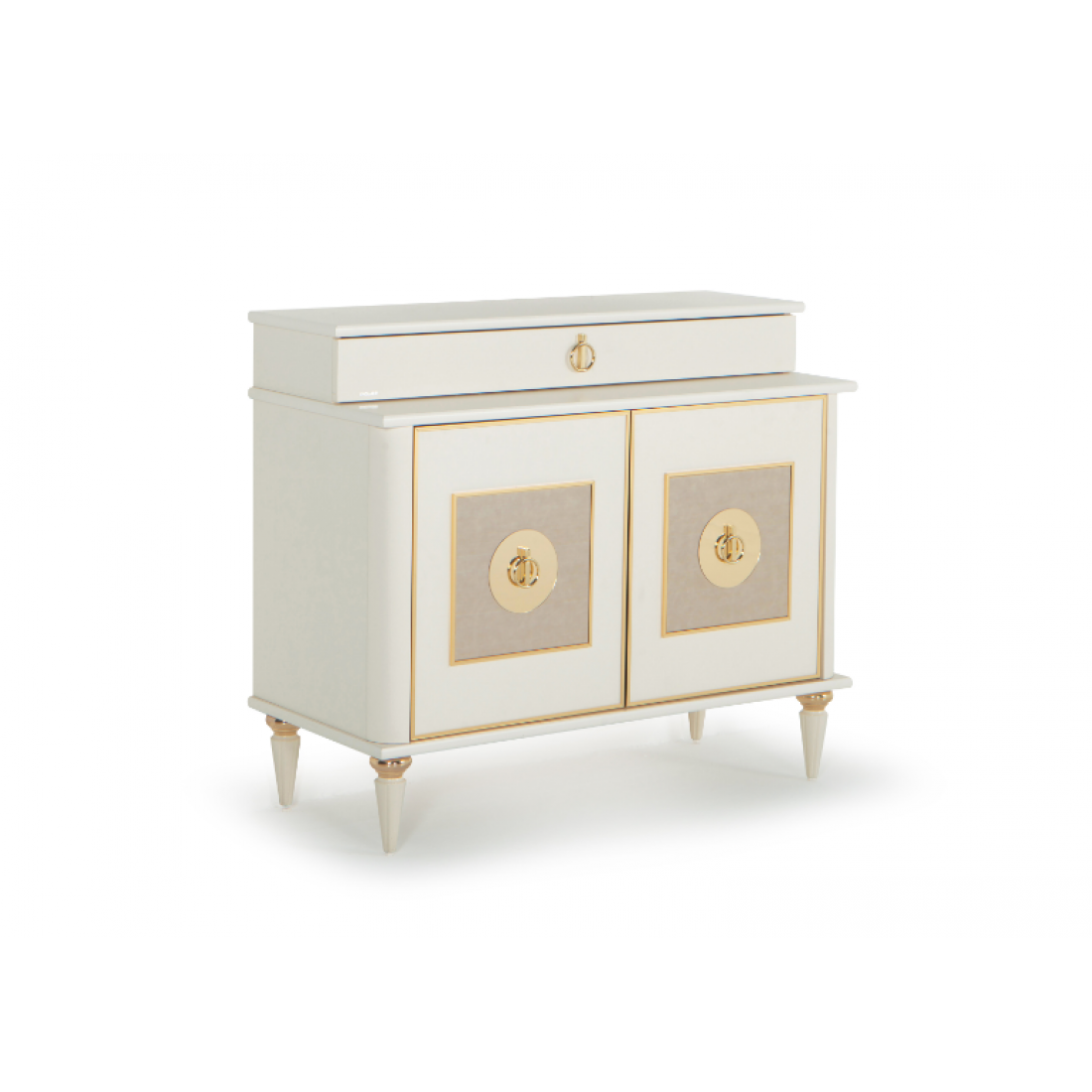 Комод- туалетный столик Mistral дополнит вашу спальню. В вернем ящике- разделитель отделанный тканью для украшений (можно не ставить), за дверцами- деревянная полка