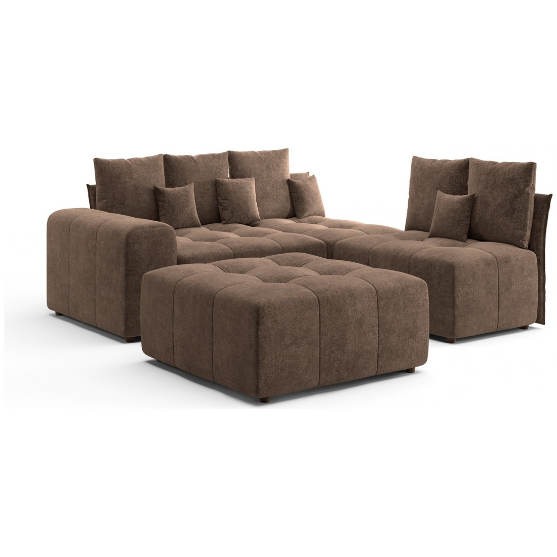 Модульный диван «Торонто» — это отличный вариант для тех, кому сложно подобрать монолитную конструкцию из-за сложной конфигурации помещения, а также тех, кто любит экспериментировать и часто делает перестановку. С его помощью можно легко изменить интерьер, превратив часть конструкции в пуф, кресло или софу.