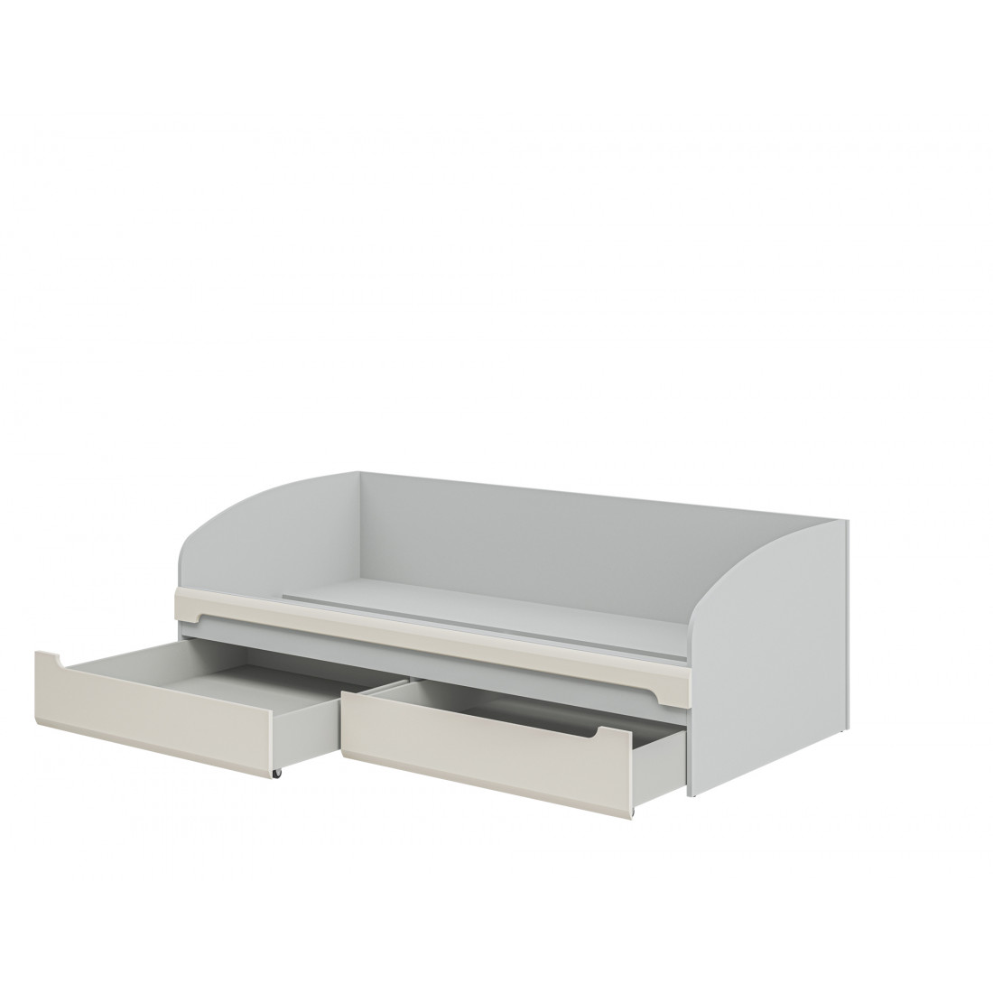 Благодаря закругленным бортикам, вы с легкостью превратите кровать в уютный диванчик с подушками.
