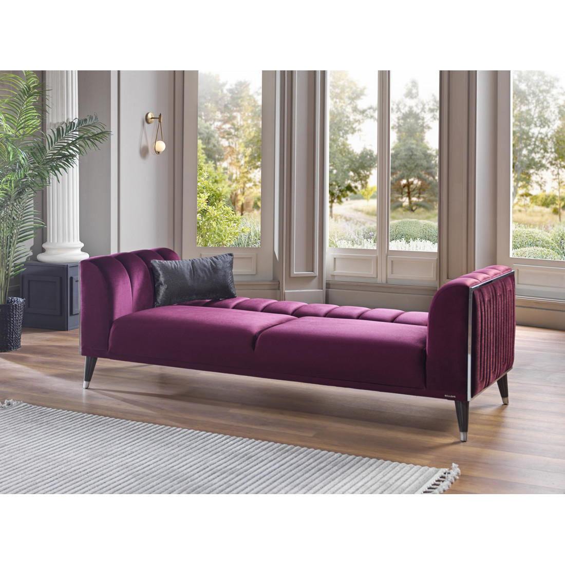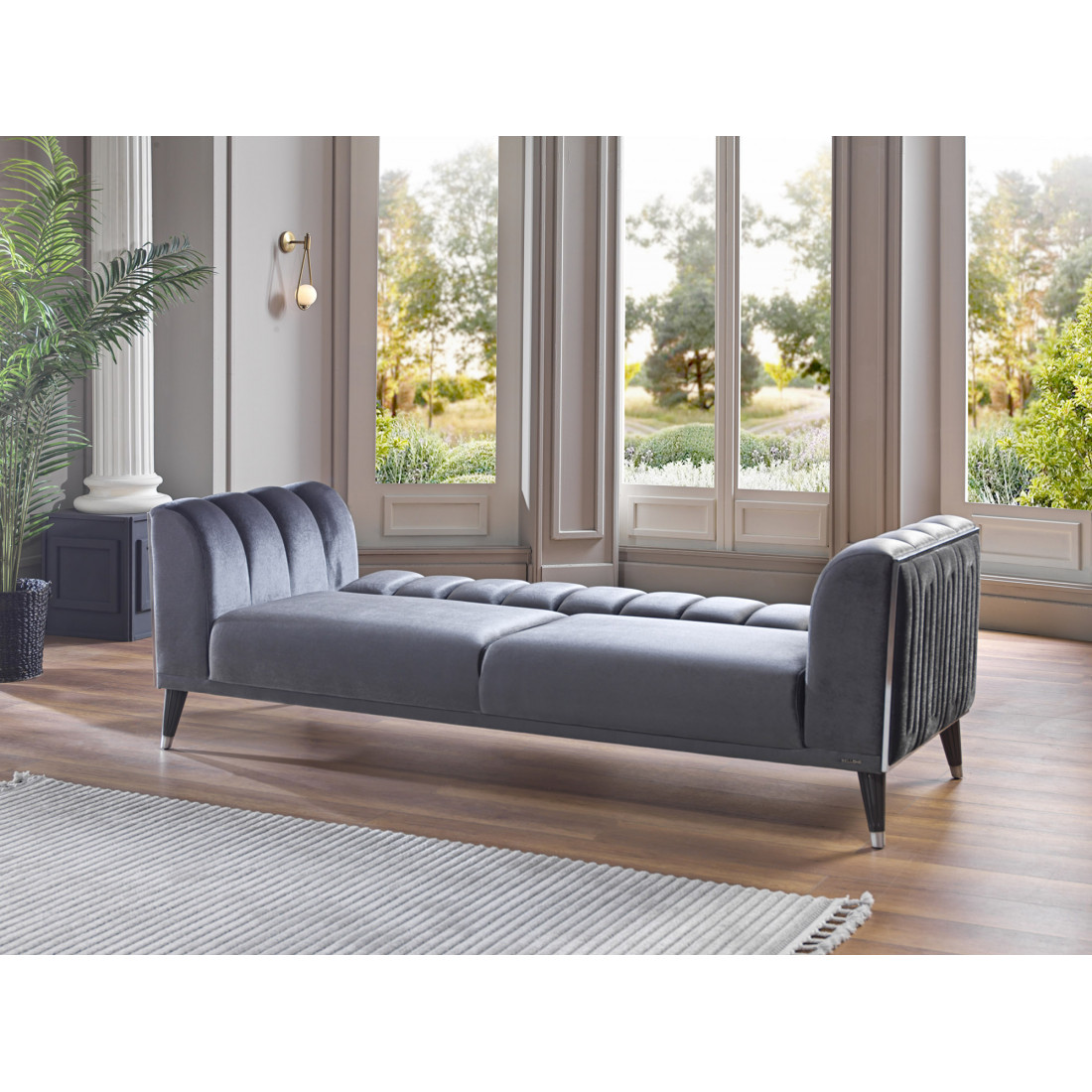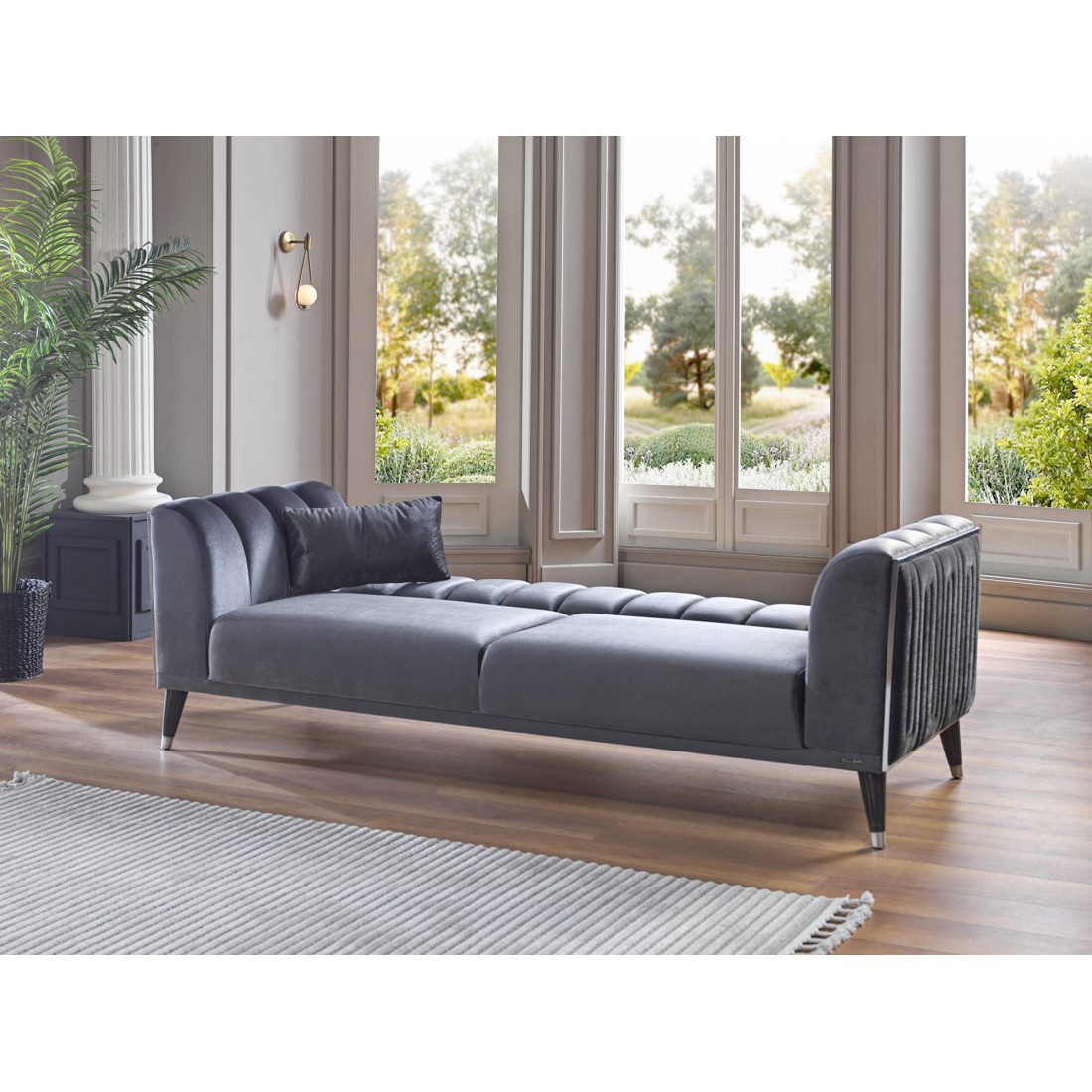 Трехместный диван-кровать Гравита (Gravita) GRAV-02 Беллона вместительный диван с невысокой спинкой. Габаритные размеры дивана 230х88х80см,  позволяют трансформировать его в удобную кровать со спальным местом 106*182см. Диван на металлокаркасе, наполнение высококачественный турецкий ППУ. Вертикальная прострочка ткани боковин обрамлена хромированными вставками по периметру. Ножки дивана изготовлены из прочного ABS-пластика.