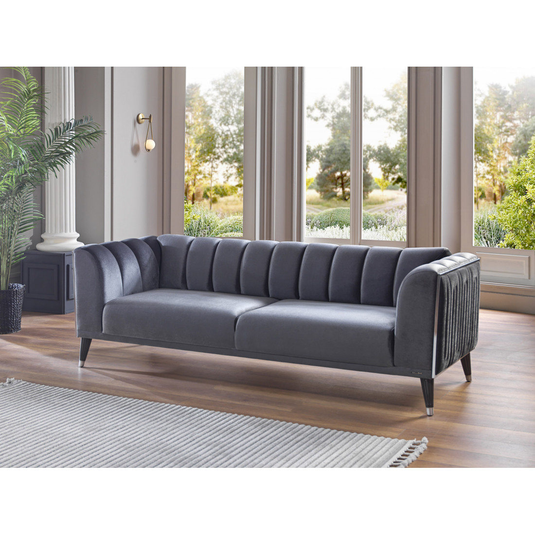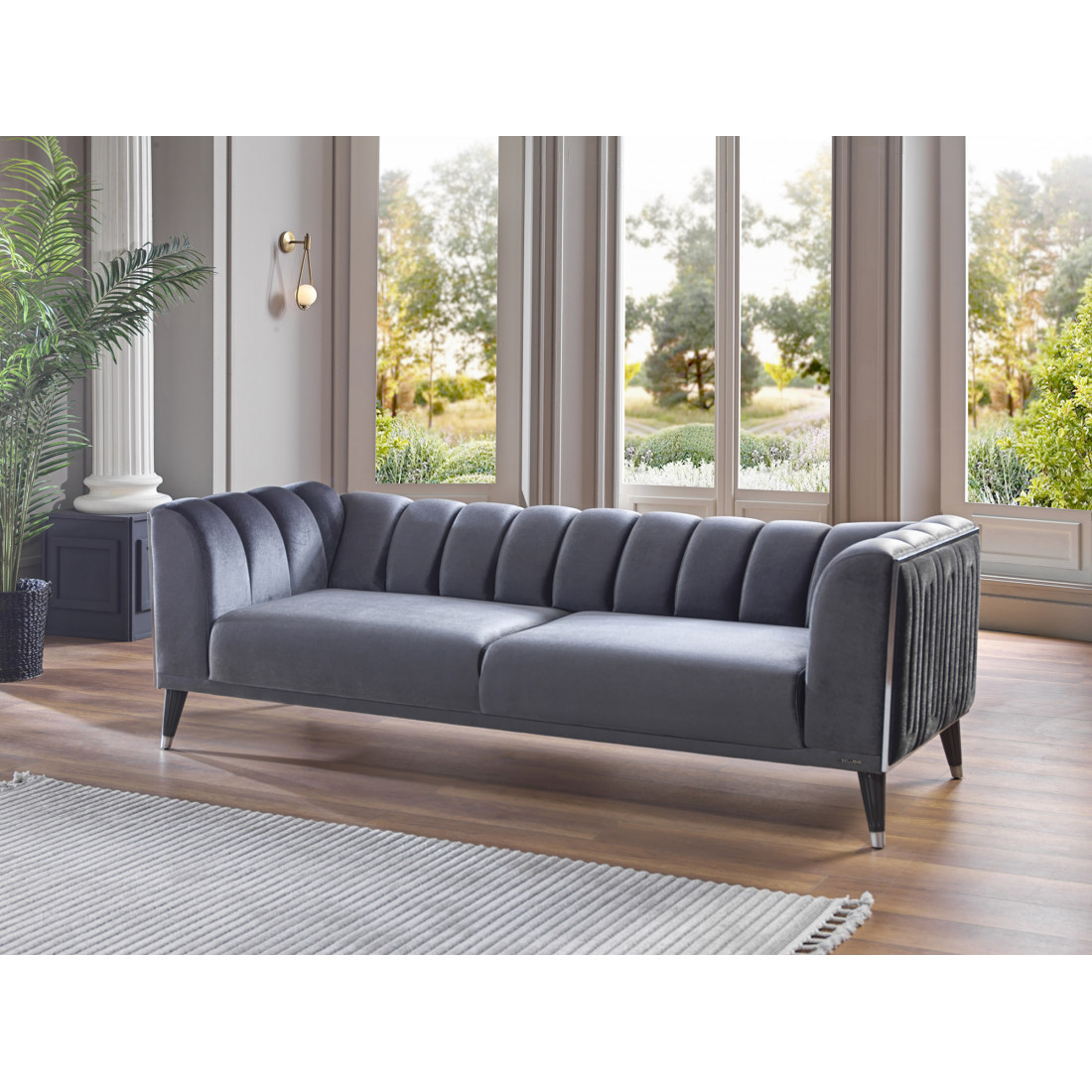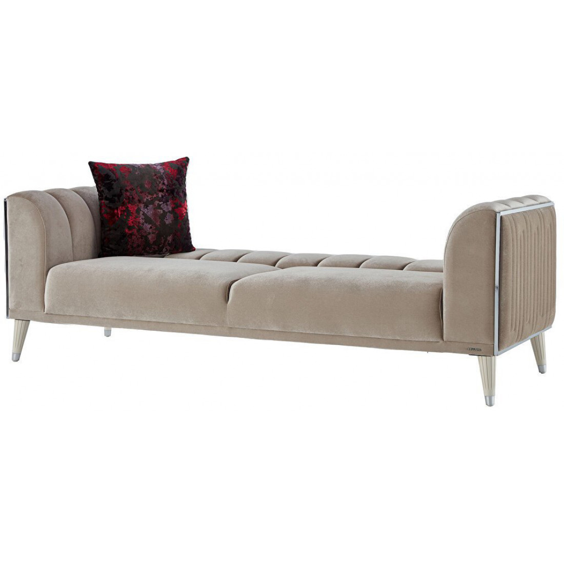Трехместный диван-кровать Гравита (Gravita) GRAV-02 Беллона вместительный диван с невысокой спинкой. Габаритные размеры дивана 230х88х80см,  позволяют трансформировать его в удобную кровать со спальным местом 106*182см. Диван на металлокаркасе, наполнение высококачественный турецкий ППУ. Вертикальная прострочка ткани боковин обрамлена хромированными вставками по периметру. Ножки дивана изготовлены из прочного ABS-пластика.